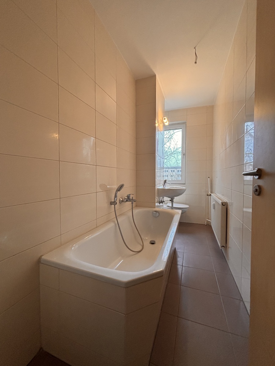- 1 Bad mit Badewanne, modernen Boden- und Wandfliesen